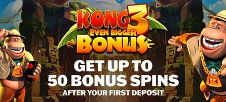 Casino thrills start with Bonus Spins! Make an initial deposit of at least $10 and enjoy 5 Bonus Spins on Kong 3™ Even Bigger Bonus, up to 50 total.